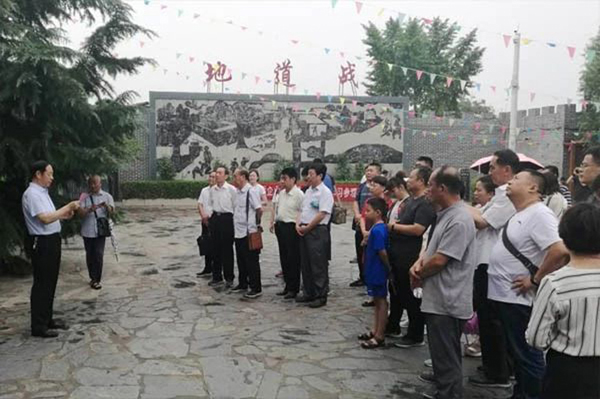 6月28日,由邯郸市企业联合会和中国红色文化研究会太行精神专业委员会联合组织,部分企业家及会员单位代表共60余人,到峰峰矿区义井镇山底村抗日地道遗址开展“迎七一爱国主义教育活动”。 作为会员(会长)单位,中道公司三名员工代表参加了本次活动,受到深刻教育。